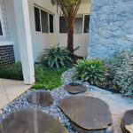 Michael Mitchell Greenspaces prepared a Conceptual Landscape Masterplan, Detail Landscape Design Services for this Exclusive Acerage Estate. Project is currently under construction with the Random Bluestone Entry Steppers and planting underway. The Arrival Experience will be finalised with the completion of three (3) x Custom Perforated Wall Lights and reinforced Turf Parking Zone for Guest & Delieveries.